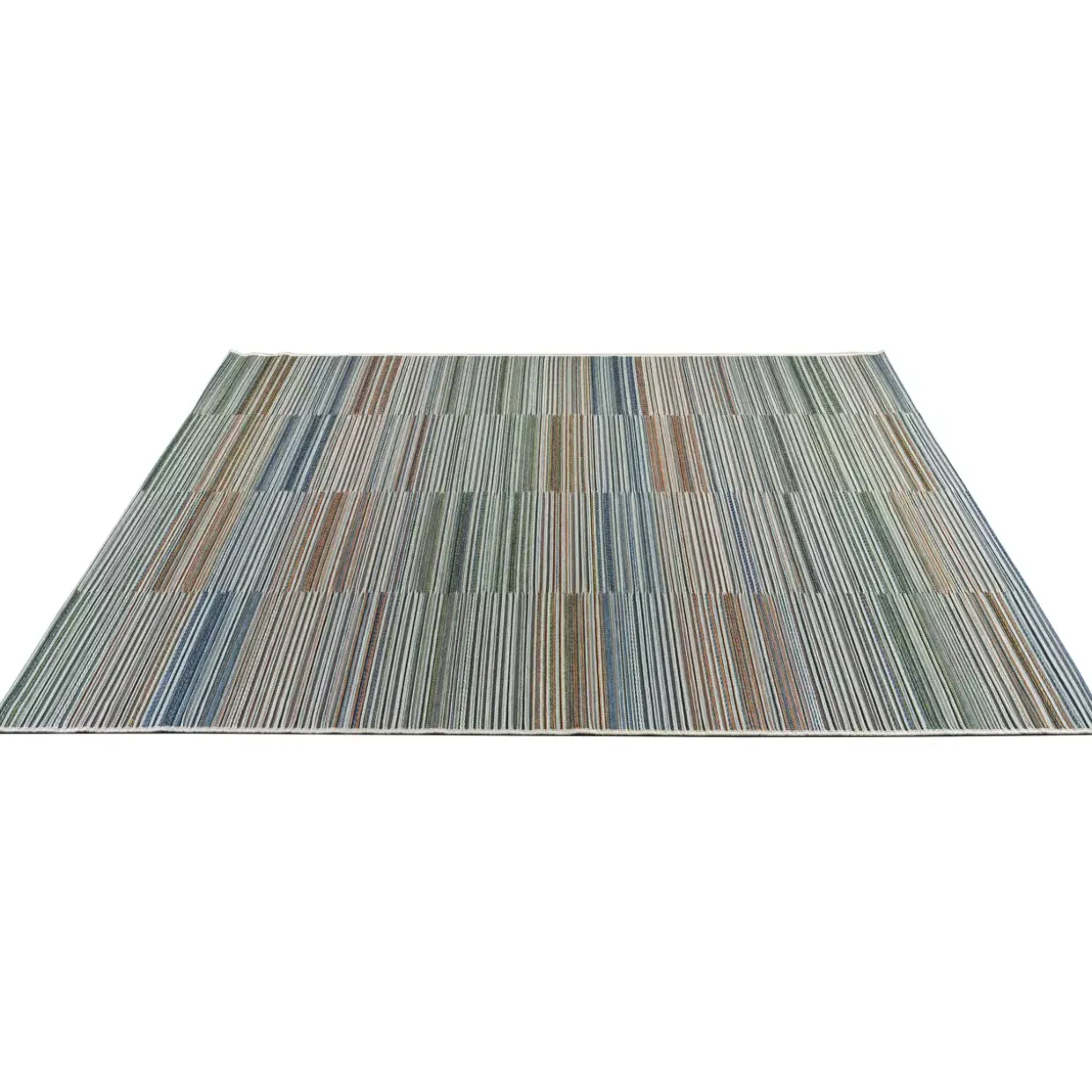 Ein geometrisches Muster in Blau-Mehrfarbig zieht alle Blicke auf sich und verleiht jedem Raum eine moderne Eleganz. Dieser rechteckige Webteppich begeistert nicht nur durch sein stilvolles Design, sondern auch durch seine Vielseitigkeit. Gefertigt aus hochwertigen Synthetikfasern, ist er sowohl robust als auch pflegeleicht, was ihn zu einem idealen Begleiter für den Alltag macht.Ein besonderes Highlight ist seine Eignung für den Außenbereich. Ob auf der Terrasse, dem Balkon oder im Garten – dieser Teppich schafft überall eine gemütliche Atmosphäre. Die synthetischen Materialien gewährleisten, dass er den Witterungsbedingungen standhält und dennoch seine Form und Farbe behält.Sein moderner Stil fügt sich nahtlos in verschiedene Einrichtungsstile ein und setzt trendige Akzente. Die farbenfrohe Gestaltung verleiht jedem Raum eine frische Note und kann als verbindendes Element zwischen unterschiedlichen Wohnbereichen dienen.Die rechteckige Form des Teppichs ermöglicht eine flexible Platzierung, sei es unter dem Esstisch, im Wohnzimmer oder im Schlafzimmer. So wird jeder Raum im Handumdrehen aufgewertet. Lassen Sie sich von der Symbiose aus Design und Funktionalität begeistern und genießen Sie die zeitlose Schönheit dieses Webteppichs.