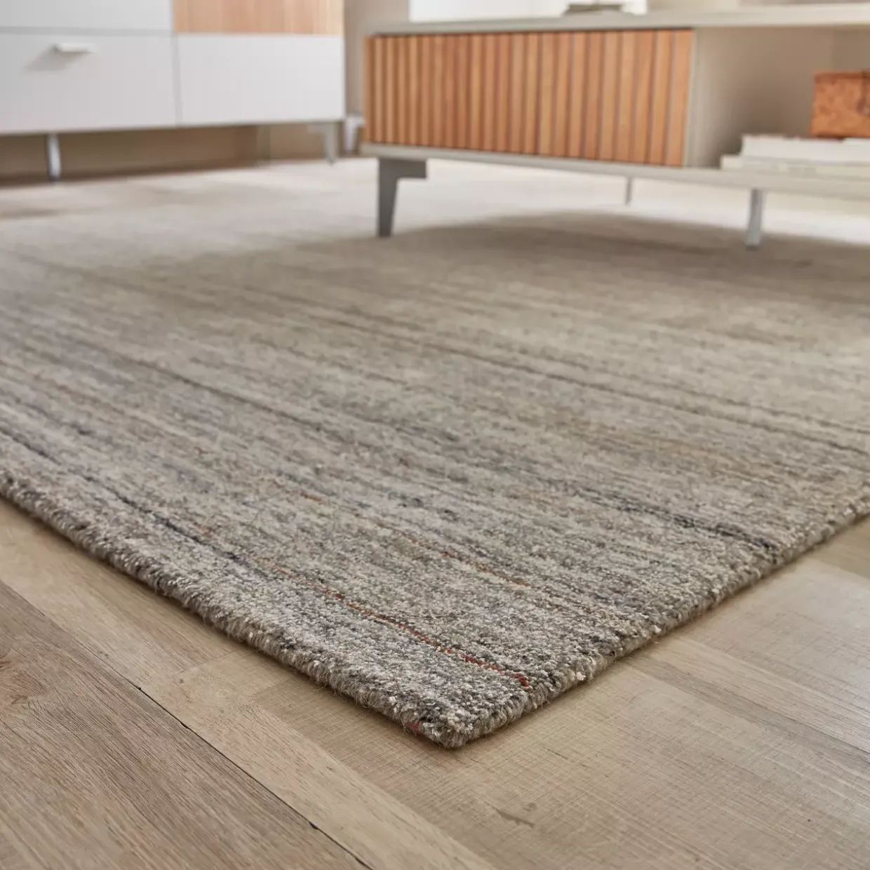 In jedem Raum wird Karano zum Blickfang, der durch seine moderne Ausstrahlung und die handgefertigte Qualität überzeugt. Mit diesem Teppich schaffen Sie eine Atmosphäre, die sowohl stilvoll als auch einladend ist. Erleben Sie, wie ein einziges Stück Textil das Ambiente eines Raumes verwandeln kann.