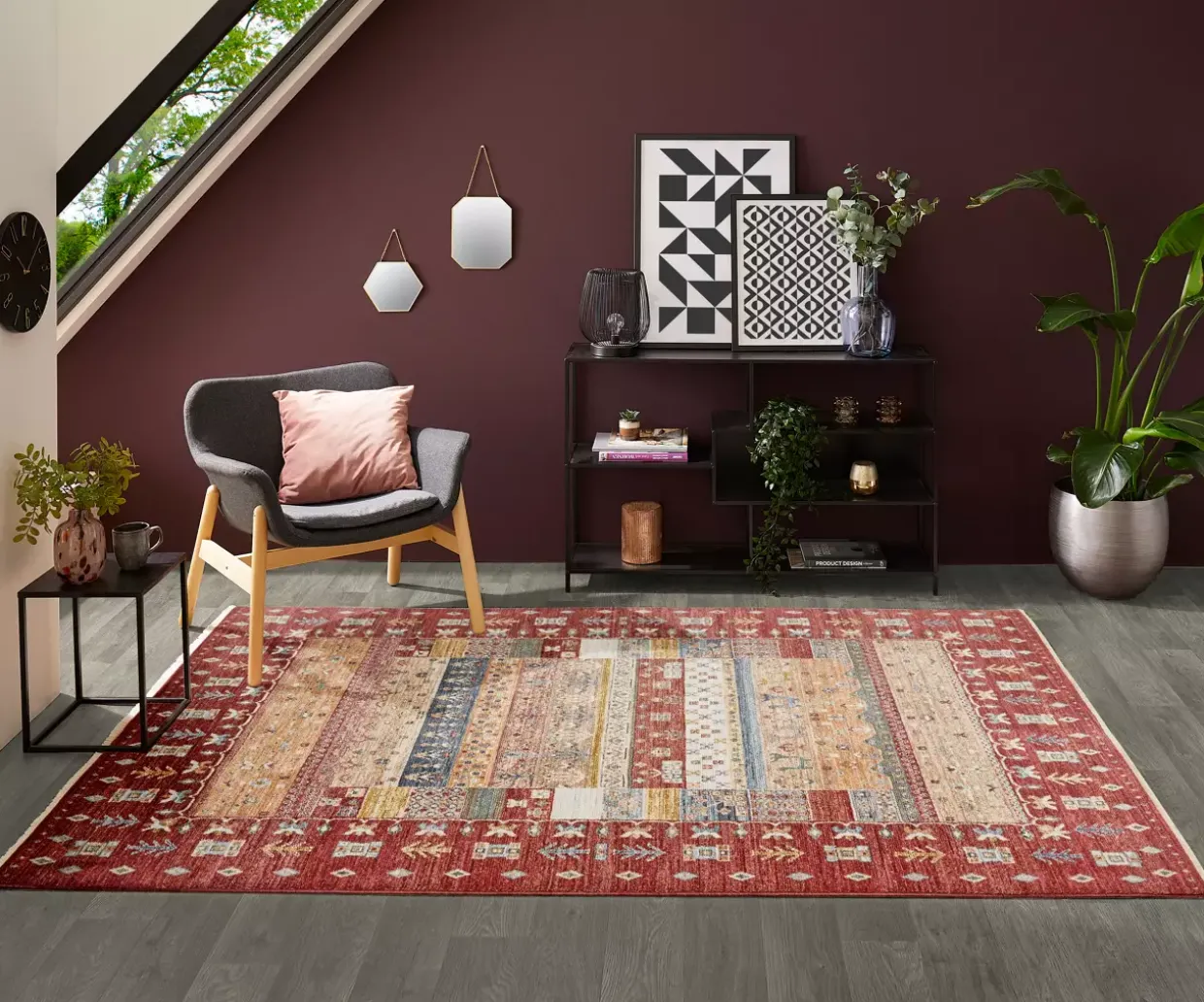 Rechteckige Formen verleihen dem Teppich Rocco eine klassische Eleganz, die sich harmonisch in jedes Zuhause einfügt. Mit seinem konventionellen Stil und der lebendigen Rot-Multi-Farbe setzt er stilvolle Akzente in jedem Raum. Der aus Textil gefertigte Webteppich besticht durch seinen weichen Flor, der aus pflegeleichtem Polyester besteht. Diese Synthetikfaser bietet nicht nur ein angenehmes Laufgefühl, sondern ist auch besonders langlebig und strapazierfähig.Ein weiteres Highlight ist das abstrakte Muster, das moderne Farbkompositionen gekonnt in Szene setzt. Ob im Wohnzimmer, Schlafzimmer oder Kinderzimmer – Rocco passt sich flexibel den verschiedensten Wohnkonzepten an und sorgt für eine behagliche Atmosphäre. Der Teppich ist zudem für die Nutzung mit Fußbodenheizung geeignet, was ein zusätzliches Plus für ein angenehmes Raumklima darstellt.Sicherheit und Gesundheit stehen im Vordergrund, denn Rocco ist nach Öko-Tex Standard 100 schadstoffgeprüft. Dies macht ihn besonders hautfreundlich und unbedenklich im täglichen Gebrauch. Die Pflege gestaltet sich einfach: Regelmäßiges Staubsaugen genügt, um ihn sauber zu halten, und kleinere Flecken lassen sich schnell mit einem feuchten Tuch entfernen. Ein praktischer und stilvoller Begleiter für Ihr Zuhause.