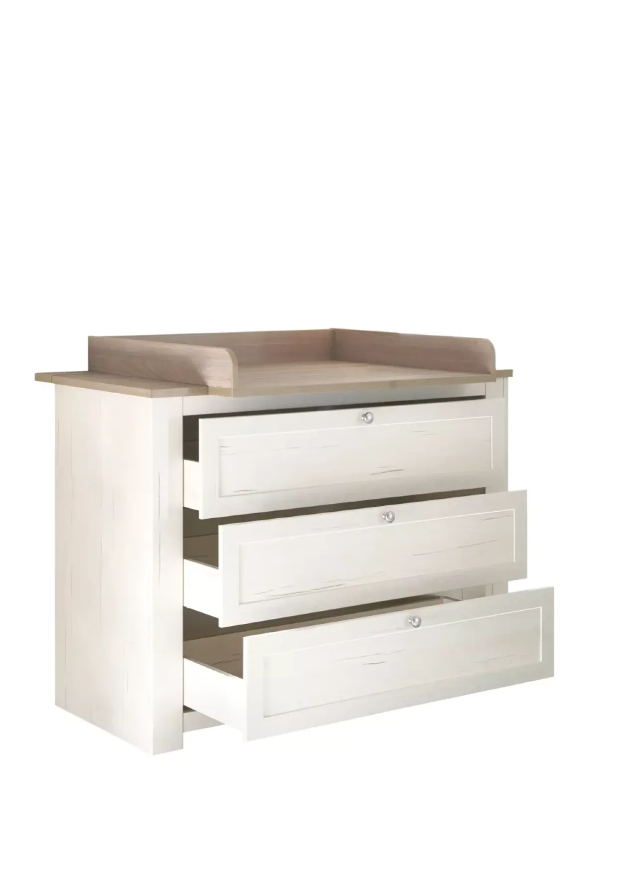 Drei großzügige Schubladen bieten genügend Stauraum, um Ordnung im Raum zu halten. Ob im Schlafzimmer, Kinderzimmer oder im Flur, das Modell Marbella fügt sich nahtlos in jede Umgebung ein und sorgt für ein stilvolles Ambiente.