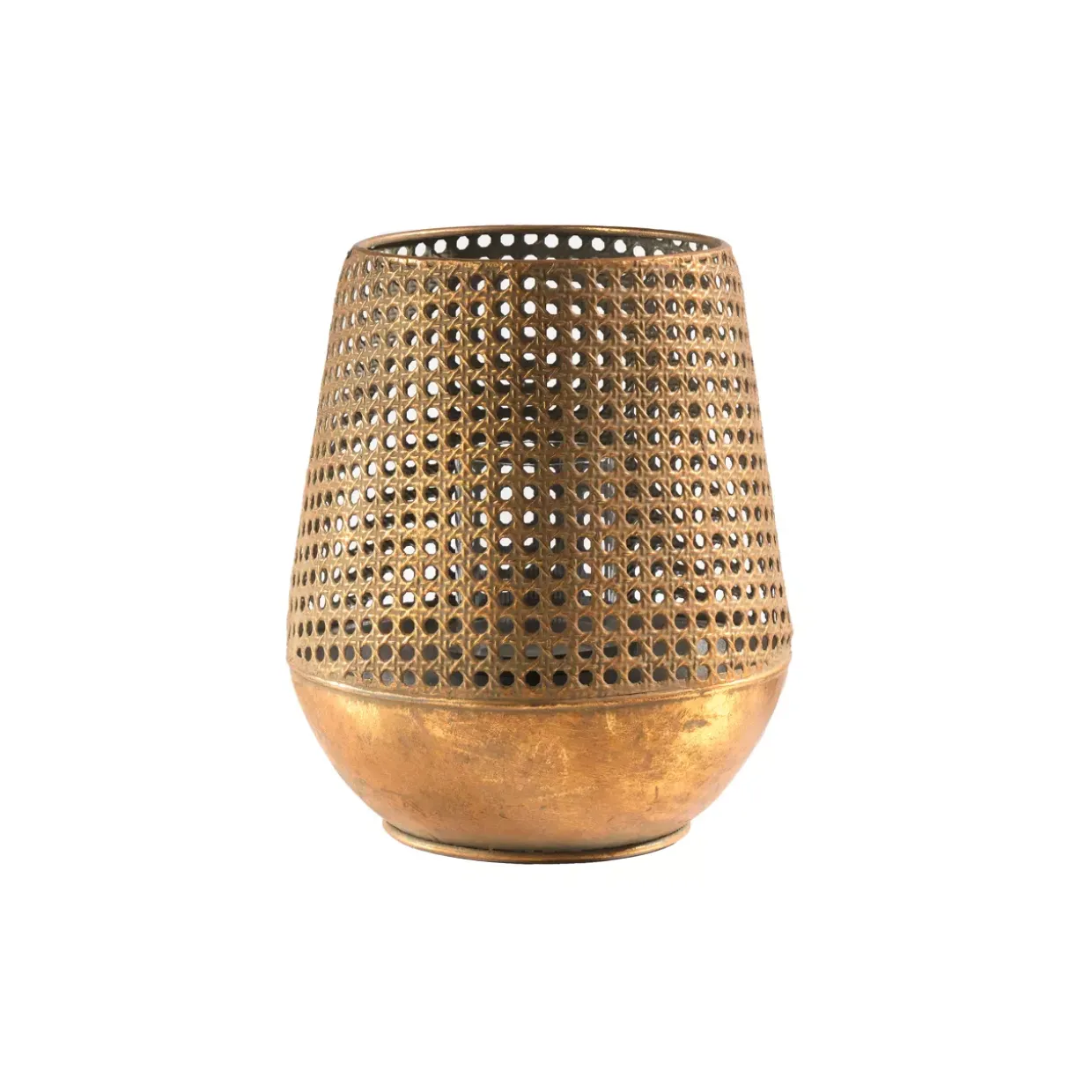 Ein faszinierendes Spiel aus Licht und Schatten bringt das moderne Windlicht in Ihrem Zuhause zum Strahlen. Die goldene Farbe verleiht dem Raum eine warme, einladende Atmosphäre und zieht alle Blicke auf sich. Durch sein prachtvolles Design und die Verwendung von hochwertigem Metall ist es nicht nur ein dekoratives Element, sondern auch ein langlebiges Accessoire.