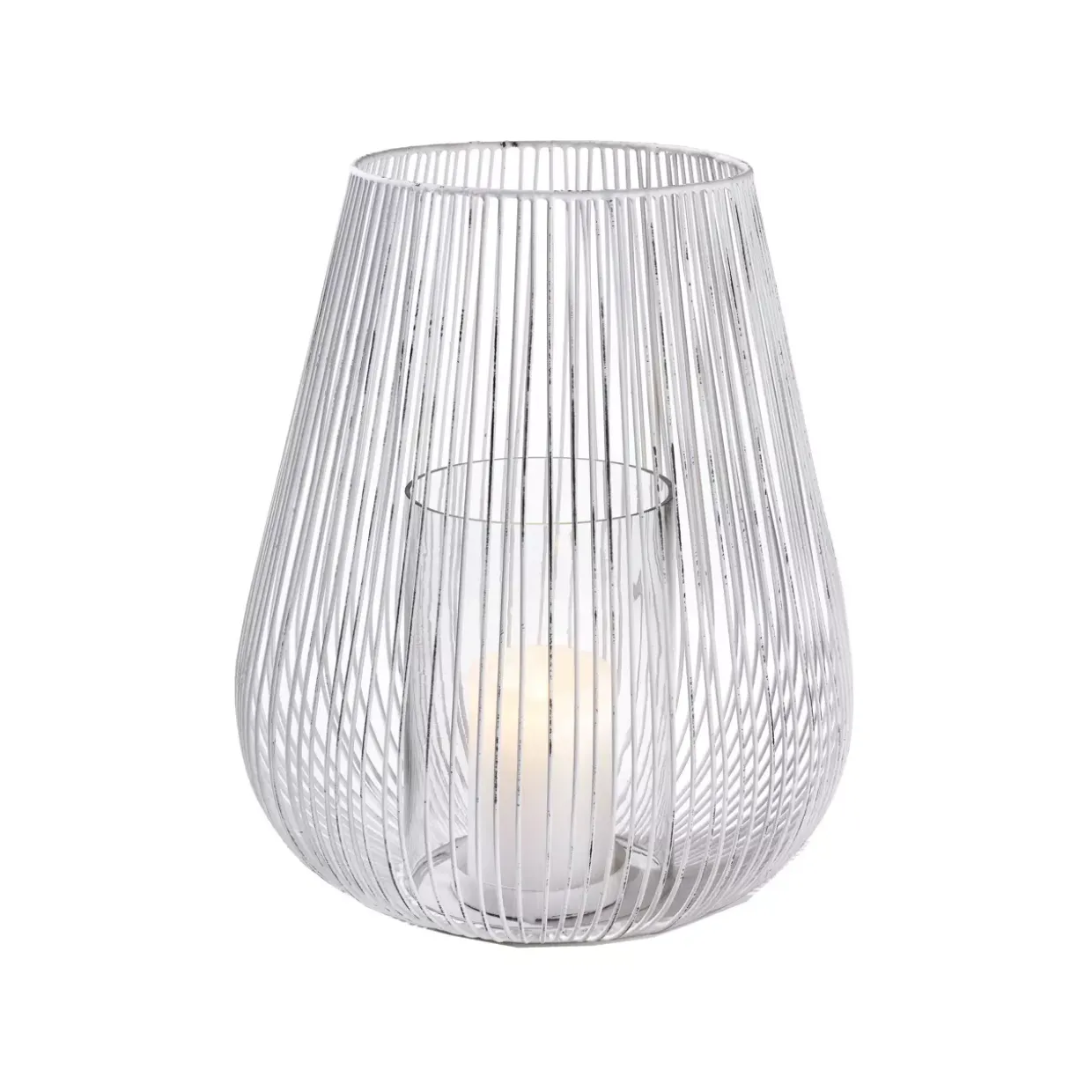 Mit modernem Stil und elegantem Design zieht das Windlicht aus Metall alle Blicke auf sich. Die weiße Farbgebung verleiht dem Accessoire eine zeitlose Ästhetik, die sich nahtlos in verschiedene Einrichtungsstile integrieren lässt.