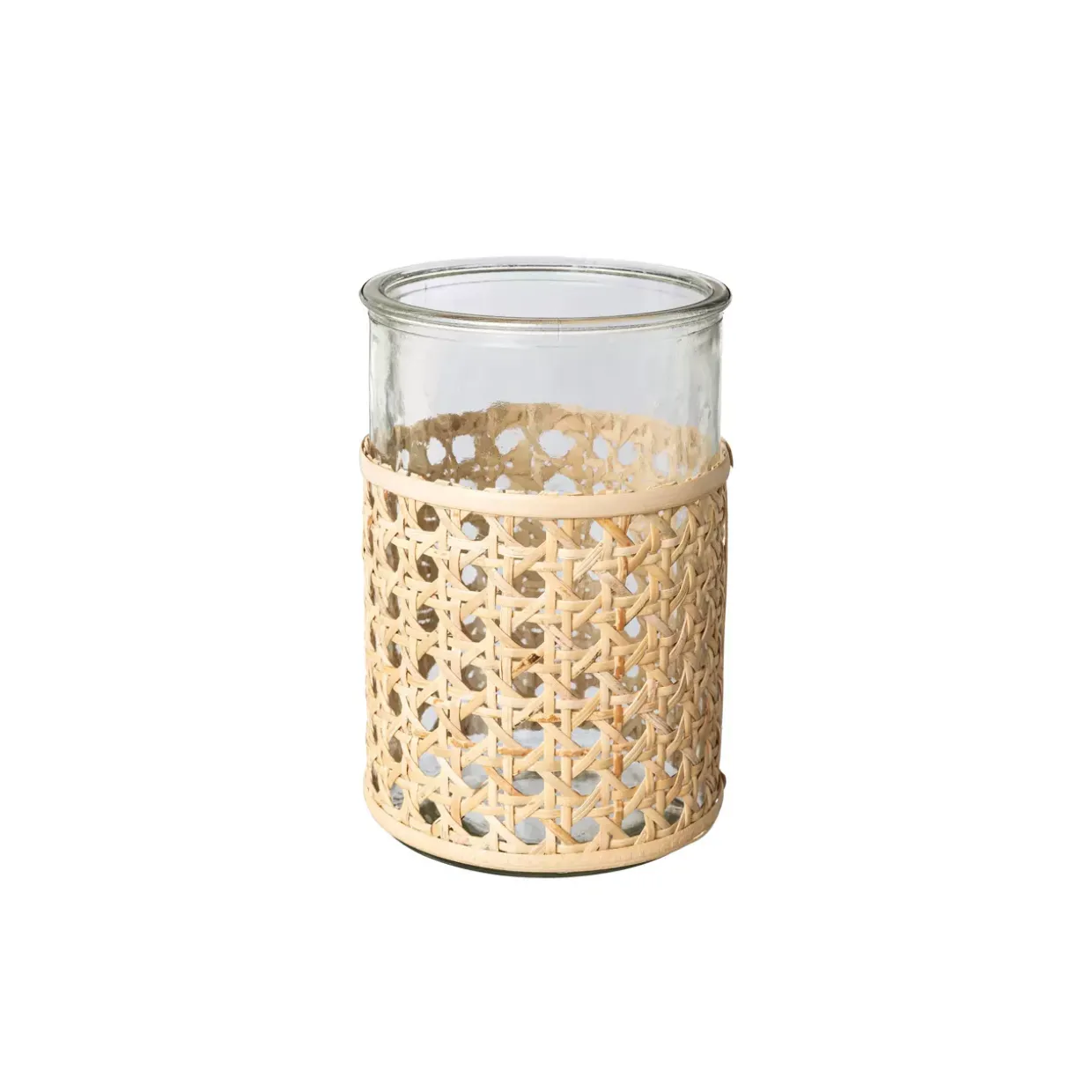 Glas und Holz vereinen sich in diesem exquisiten Windlicht zu einem harmonischen Ensemble. Die Kombination aus klarem Glas und natürlichem Rattan verleiht jedem Raum eine warme und einladende Atmosphäre. Das Windlicht besticht durch seinen konventionellen Stil, der sich nahtlos in verschiedenste Wohnumgebungen einfügt, sei es im modernen Loft oder im gemütlichen Landhaus.