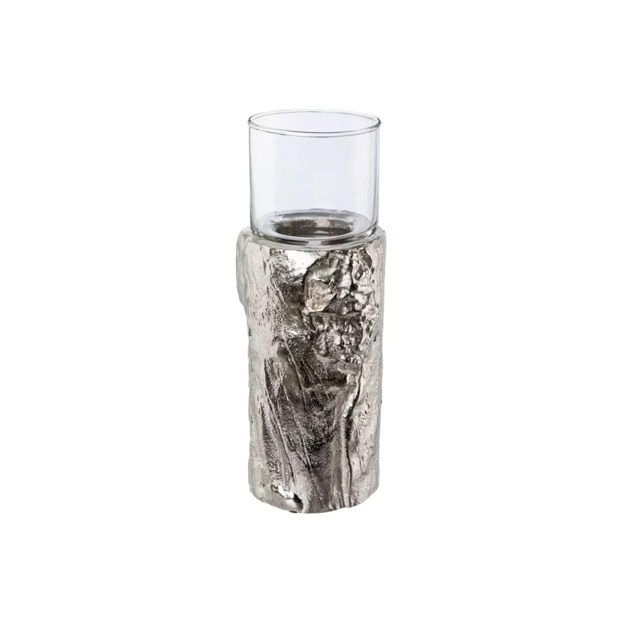 Silberfarbene Eleganz trifft auf natürliche Ästhetik im Modell Naturalment. Das moderne Design strahlt zeitlose Klarheit aus und fügt sich harmonisch in verschiedenste Wohnstile ein. Gefertigt aus hochwertigem Glas, vereint dieses Windlicht edle Materialien mit einer ansprechenden Optik.
