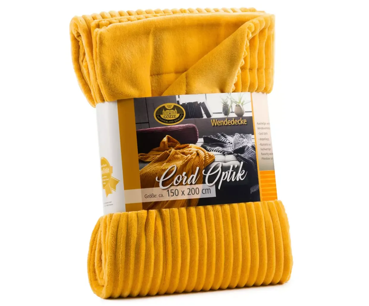 Ein Hauch von Modernität zieht in Ihr Zuhause ein mit der rechteckigen Wohndecke im zeitlosen Cord-Stil. In kräftigem Senfton gehalten, bringt sie Gemütlichkeit in jeden Raum. Die Cord-Optik verleiht der Decke nicht nur eine interessante Textur, sondern auch einen Hauch von Vintage-Charme, der sich perfekt in moderne Einrichtungskonzepte einfügt.