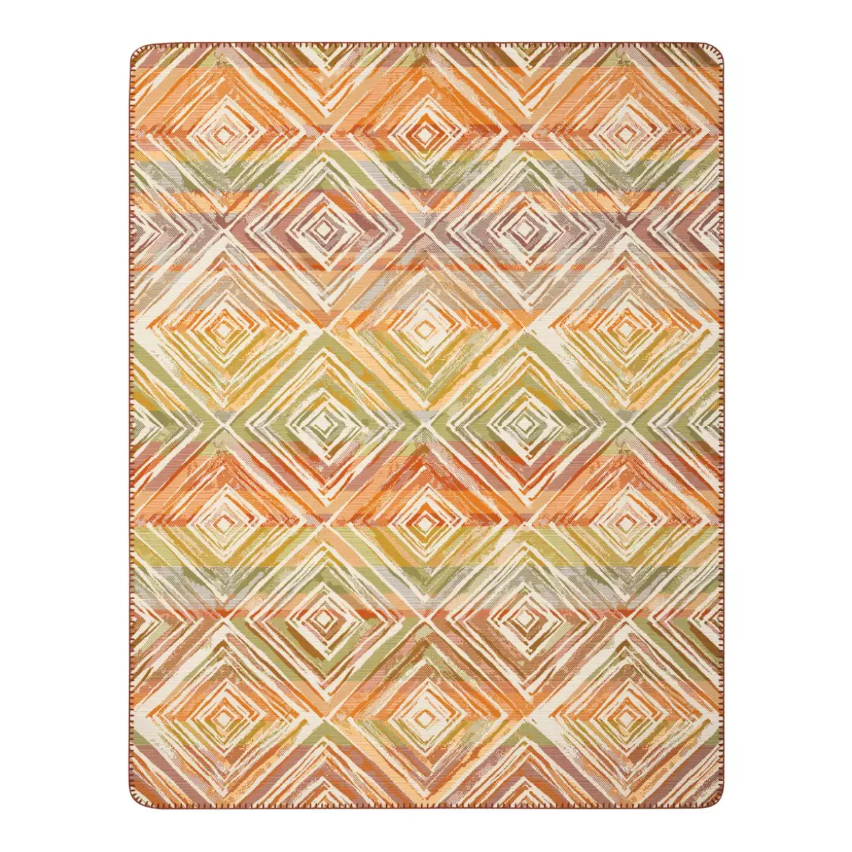 Wie Diamanten im Licht der untergehenden Sonne präsentiert sich diese außergewöhnliche Wohndecke in der Farbe Sunset Diamonds. Die moderne rechteckige Form und das graphische Muster verleihen jedem Raum eine stilvolle Eleganz. Das Rautendessin zieht alle Blicke auf sich und erinnert an die warmen Farben eines langen Sommertages.