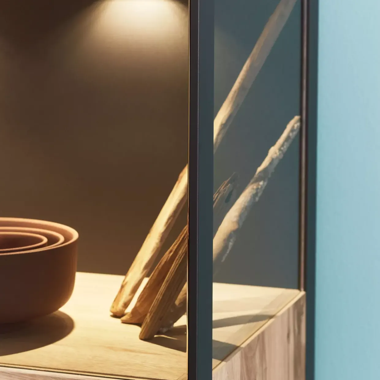 Die faszinierende Kombination aus Parsolglas in Grau und hochwertigem Holz verleiht der Wohnkombination Andra eine moderne Eleganz. Mit einem stilvollen Mix aus Holz und Metall bietet dieses Möbelstück eine harmonische Ergänzung für jeden Wohnraum. Das Modell Andra besticht durch seine klaren Linien und die ansprechende Farbkombination aus Eiche rustico hell, gebürstetem Anthrazit und mattem Anthrazit. Qualität und Funktionalität stehen im Fokus. Alle Schubladen sind mit einem Vollauszug versehen, was eine optimale Nutzung des Stauraums ermöglicht. Die hochwertigen Beschläge mit Selbsteinzug und Dämpfung sorgen für ein sanftes Schließen der Türen und Schubladen und erhöhen den Komfort im Alltag. Für eine besondere Atmosphäre kann auf Anfrage eine passende Beleuchtung hinzugefügt werden, die das Möbelstück in das richtige Licht rückt. Die Oberfläche ist furniert, was nicht nur die Ästhetik betont, sondern auch die Langlebigkeit des Möbels unterstützt. Die Wohnkombination Andra vereint modernes Design mit praktischen Funktionen und hochwertigen Materialien. Sie fügt sich nahtlos in verschiedene Einrichtungsstile ein und bietet zudem die Möglichkeit, individuelle Akzente zu setzen. Ein Möbelstück, das sowohl optisch als auch funktional überzeugt.