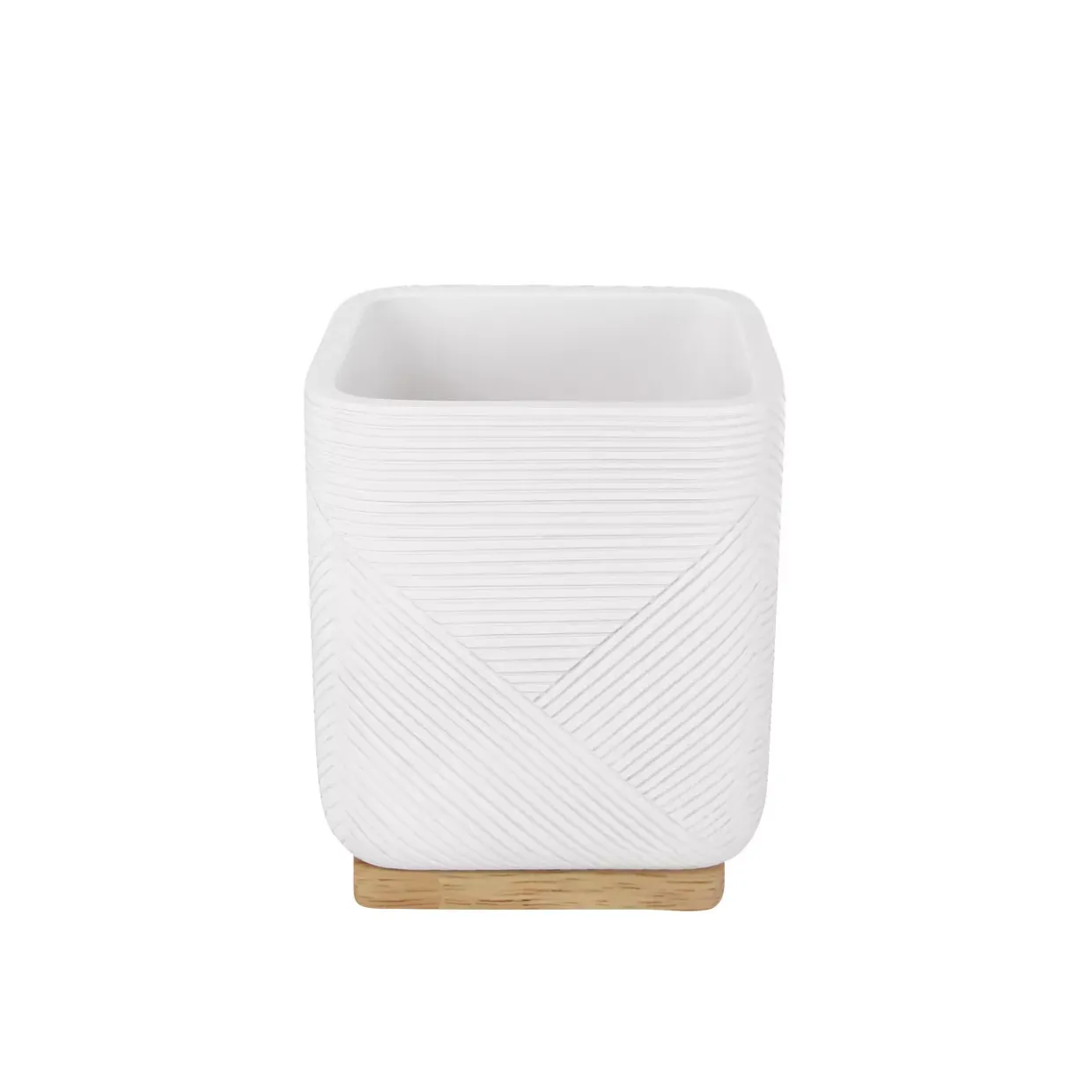 Die Kombination aus Holz und Kunststoff sorgt nicht nur für Stabilität, sondern auch für eine ansprechende Ästhetik. Das schlichte Weiß fügt sich harmonisch in verschiedene Badezimmereinrichtungen ein und unterstreicht die moderne Gestaltung. Ob in einem minimalistischen oder einem luxuriösen Ambiente, dieser Zahnputzbecher ist ein wahrer Hingucker.